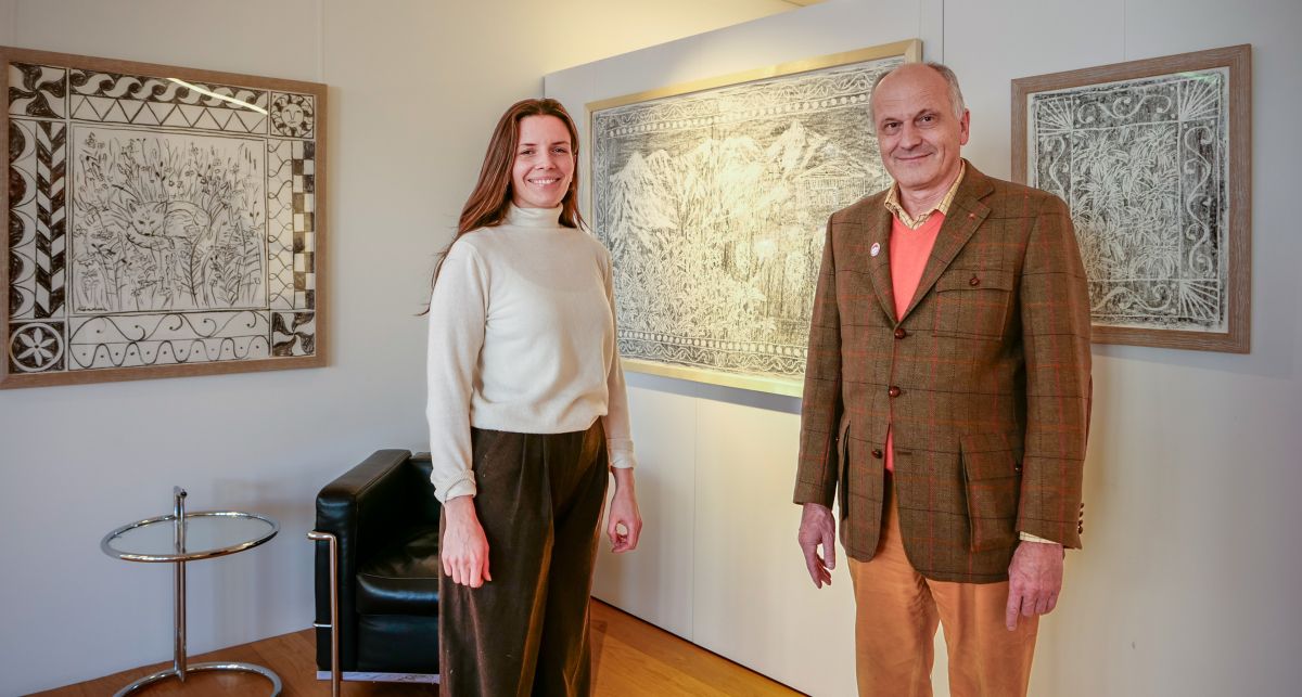 Künstlerin Pia Kühnemann und Gallerist Markus Kirchgeorg.