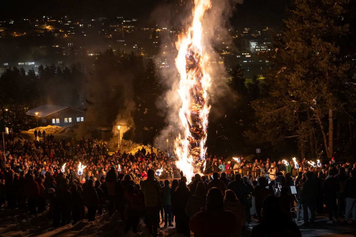 «L’hom strom es ün bel hom, ün hom da nom e pom chi metta sü il buol a nos cumün da Scuol», han chantà las abitantas e’ls abitants da Scuol in sonda saira intuorn il fö. La chanzun cumponüda da Men Rauch es üna sort imna pellas indigenas e’ls indigenas.