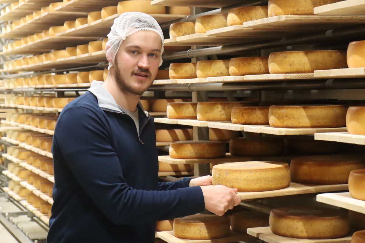 Janic Fasser, il mainagestiun da la Chascharia Val Müstair, preschainta ils chaschöls jauers da buna qualità (fotografia: Martin Camichel).
