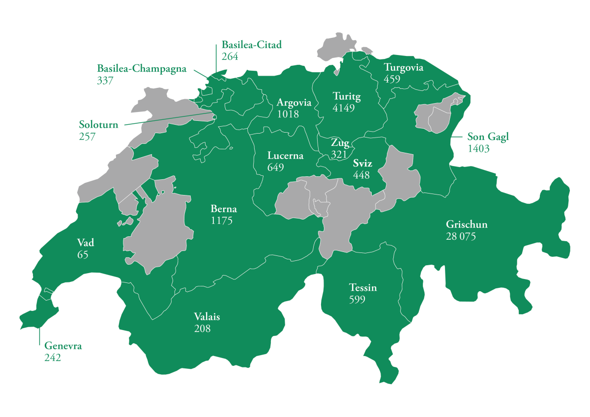 La «populaziun» rumantscha es gnüda calculada adüna culla media da las cifras dals ons 2017 fin 2021 tenor las cifras da l’Uffizi federal da statistica. Pels chantuns sainza cifras nu daja avuonda datas (grafica: RTR)