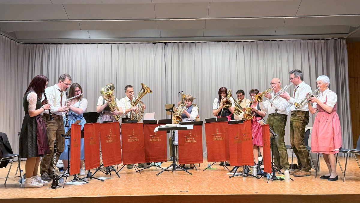 Mit «Heimat voll Sonnenschein» von Markus Pöttschacher wurde eine heitere Atmosphäre in den Saal gebracht, gefolgt von «Die schönsten Jahre» von Armin Kofler. Beide Stücke erhielten grossen Applaus vom Publikum. «Romantic Flowers», ein Solo für Tenorhorn und Flügelhorn von Mathias Rauch, war ein weiterer Höhepunkt des Abends. Ladina Nobs (Tenorhorn) und Philipp Ernst (Flügelhorn) zauberten eine harmonische und klangreine Darbietung in den Saal. Das Konzertprogramm umfasste eine Mischung aus Marsch, Polka und Walzer. Hervorzuheben sind der Marsch der Titanen von Michael Schiegg, die Polkas Böhmische Liebe von Mathias Rauch, Hinter der Garage von Jaroslav Jankovec und einige andere. Auch der Olympia Marsch von Jaroslav Labsky und die Amsel Polka von Jaromir Vejvoda, zeigten die Schönheit der böhmischen Blasmusik.
