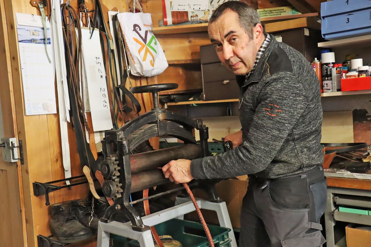 Il seller Andrea Pitsch da Müstair vi da la lavur in sia ufficina, ingio ch’el prodüa a man las giaischlas pel Chalandamarz (fotografia: Martin Camichel).