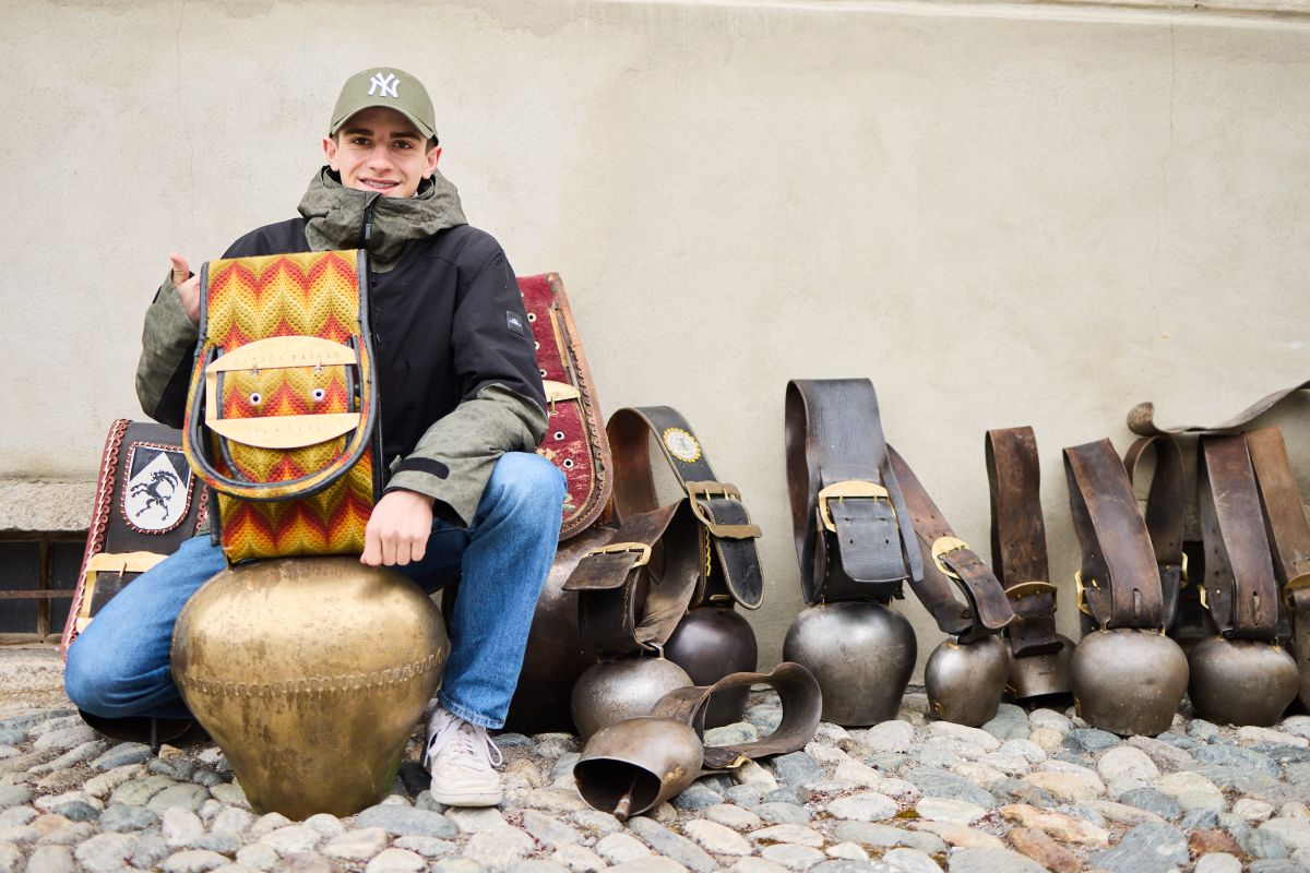 Il patrun da Chalandamarz e la plumpa dals Padruns: Livio Padrun culla plumpa da seis bazegner (fotografia: Michael Steiner).