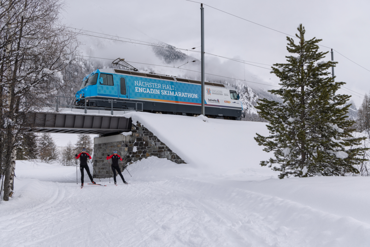Am Marathontag setzt sie praktisch alle verfügbaren technischen und personellen Ressourcen ein, um den Skimarathon und den normalen Tagesbetrieb zu bewältigen. An «gewöhnlichen» Tagen rollen gut 700 Züge auf den Bündner Schienen. Am Marathontag kommen 150 Extrazüge dazu. Ab vier Uhr morgens bringt die RhB in Extrazügen ab Landquart, Chur, Davos und Scuol-Tarasp tausende Fahrgäste nach St. Moritz. Von dort gelangen sie mit dem Engadin Bus zum Start nach Maloja. Bei der letzten Austragung im Jahr 2024 reisten in 13 Früh-Extrazügen 4200 Personen an. Dies entspricht knapp einem Drittel aller Teilnehmenden.