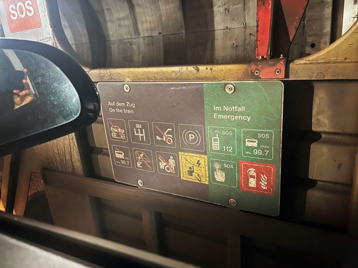 Las tevlas da la Viafier retica i’l tunnel dal Vereina, chi infurmeschan als automobilists cu ch’els s’haun da cumporter in cas d’urgenza (fotografia: David Truttmann).