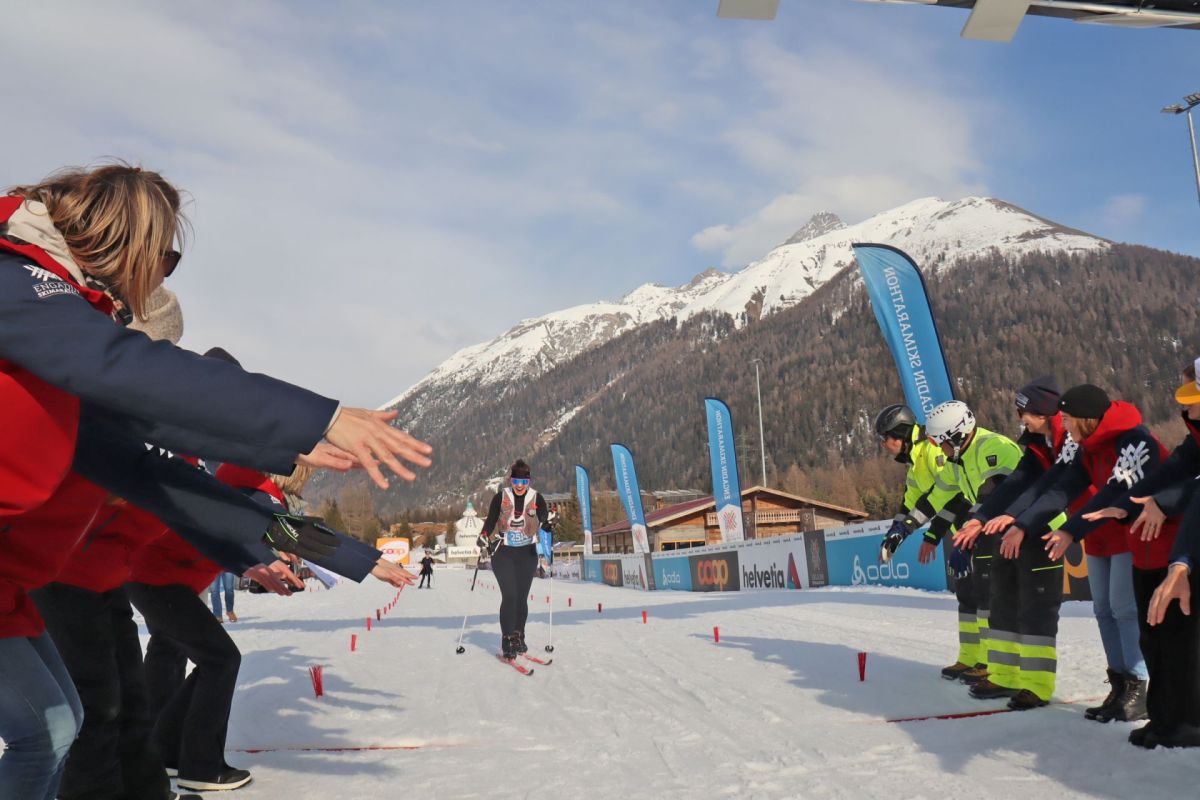 Victoria Vassileva arrivand i’l böt a S-chanf scu ultima curridura dal 55evel Maraton da skis engiadinais cuort zieva las 16.00 in dumengia passeda.