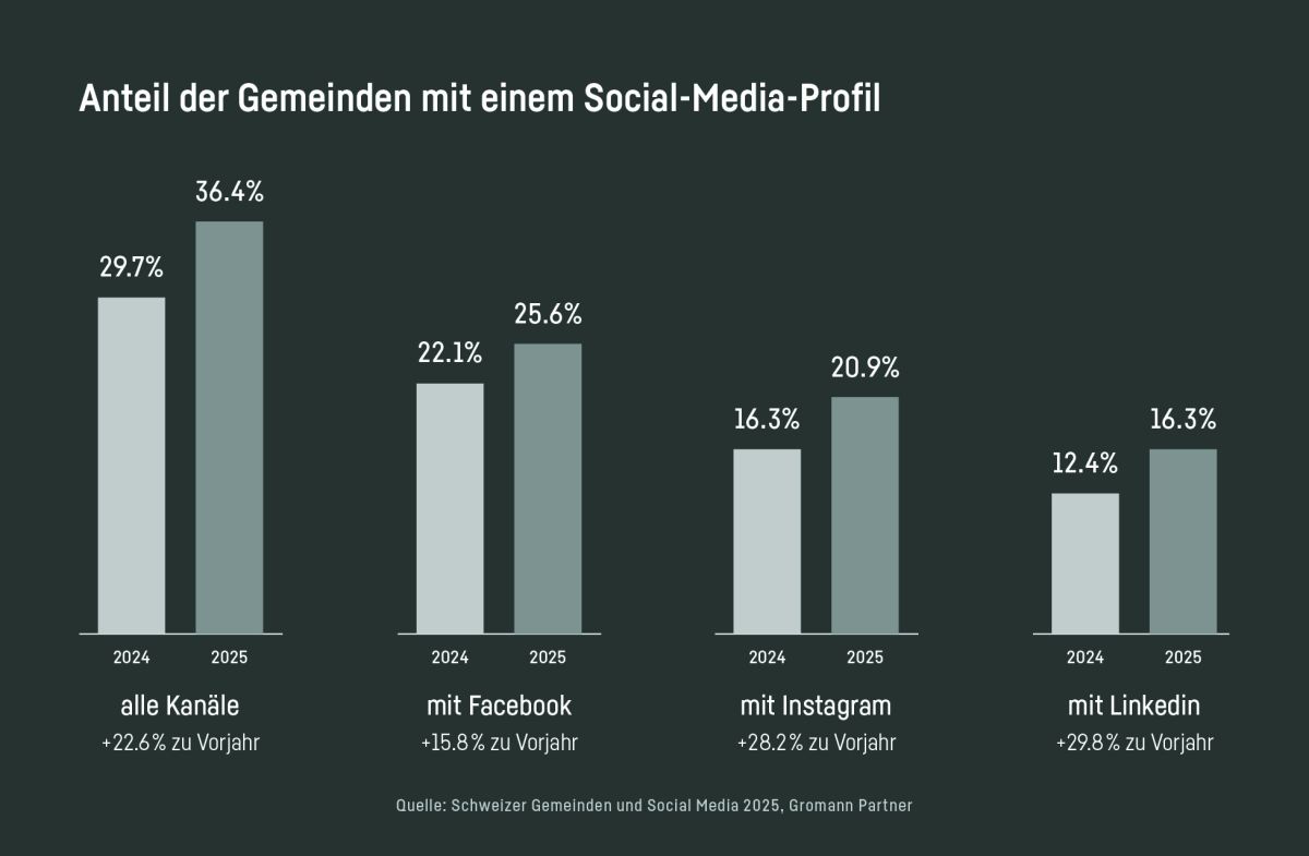 Eine Studie zeigt, dass 36,6 Prozent der Schweizer Gemeinden Social Media nutzen, Tendenz steigend. Graubünden hinkt hinter dem Schweizer Durchschnitt her. Eine Ausnahme ist Südbünden, und dort insbesondere die Oberengadiner Gemeinden.