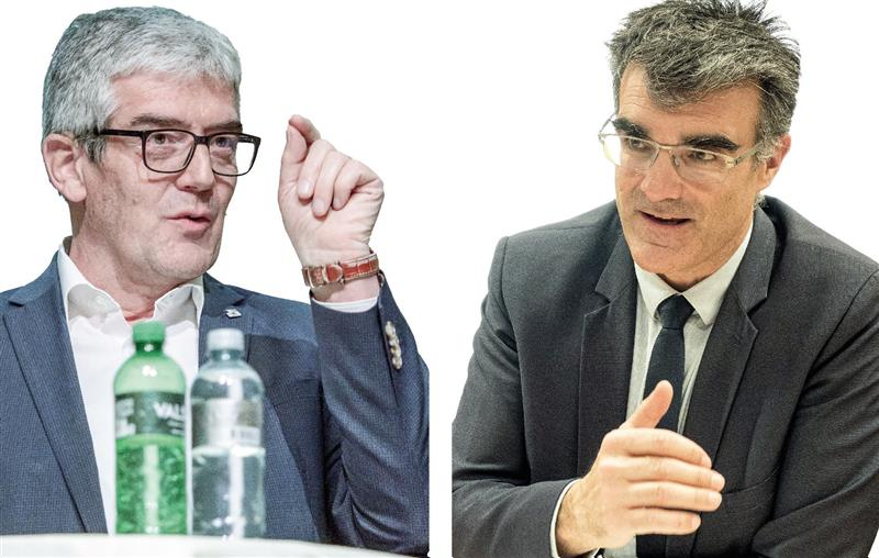 Die Regierungsräte Jon Domenic Parolini und Marcus Caduff freuen sich auf die Freestyle-WM. Fotos: D.Zaugg/R.Stifel