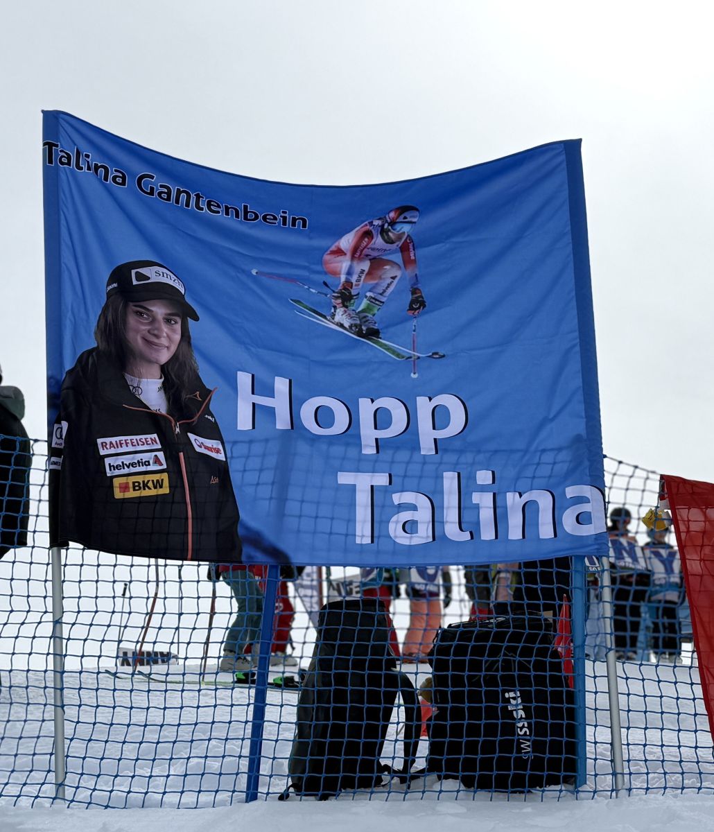 Schon von weitem ist das Banner für Talina Gantenbein zu sehen. «Hopp Talina». Ein Dutzend Fans haben sich dahinter versammelt, mit Schweizerfähnchen und magentafarbenen Mützen und Kappen. Auch Pappschilder haben Mutter Ulrike Gantenbein und die drei Freundinnen Luana, Rebecca und Désirée gemalt. Eigentlich hätten viel mehr Fans zum Skicross-Finallauf der Scuolerin kommen wollen, doch der Wettkampf wurde aufgrund der schlechten Wetterprognosen für das Wochenende um einen Tag vorverlegt und so fehlen jetzt viele, darunter auch Bruder Sascha.