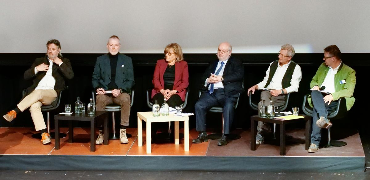 Diskutierten anlässlich der ersten Baderleda von Gammeter Media und EP/PL zur Zukunft des Spitals Oberengadin: (von links) Maurizio Michael, Hugo Keune, Prisca Anand, Stefan Metzger, Peter Hasler ...