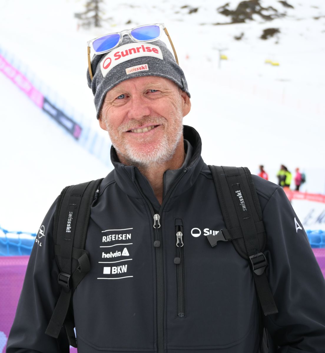 Weltmeister-Trainer Michel Roth am ersten Trainingstag im Skigebiet Corviglia. Foto: Reto Stifel