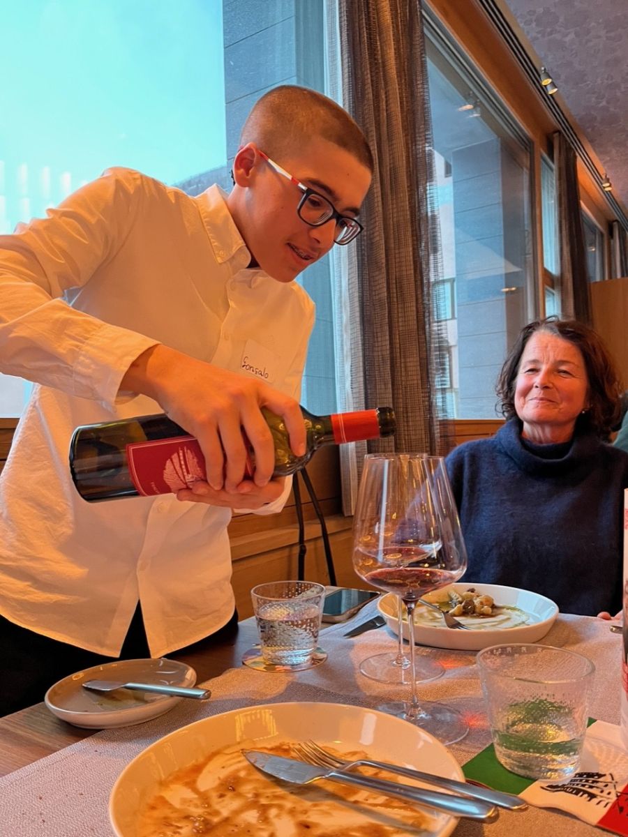 Richtig den Tisch decken, Besteck polieren und korrekt anordnen, lernen, wie man den Gast begrüsst, von welcher Seite serviert wird, das Menü anpreisen – das lernen die 13- bis 15-jährigen Schülerinnen von den Restaurationsfachmännern in La Trattoria im Hotel Walther. Einen Nachmittag lang haben sechs Mädchen der Oberstufe Pontresina Zeit, in die Rolle der Gastgeberinnen zu schlüpfen. Am Abend wird hier nämlich ein Vier-Gänge-Menü serviert, gekocht von sechs gleichaltrigen Kolleginnen und Kollegen, welche im Küchenteam eingeteilt sind. Unter anderem machen die Jugendlichen Foccacia, Bruschetta, Saltimbocca, Safranrisotto oder Tiramisu.