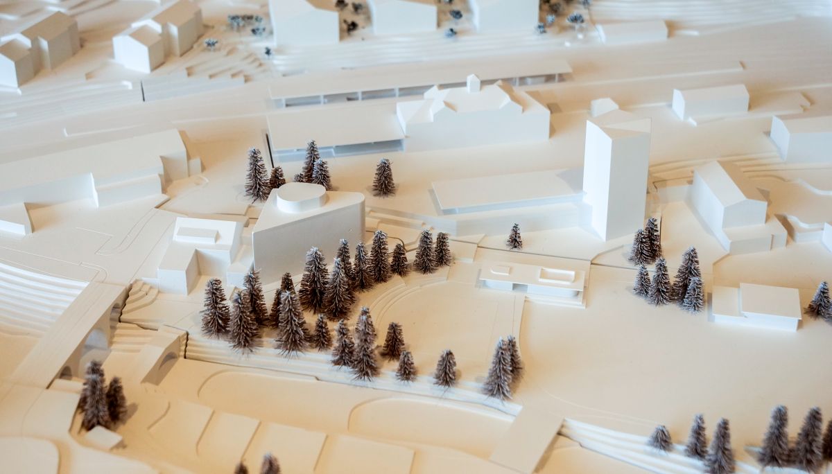 Das Projekt "Arena" (Giubbini/Bänziger/OePlan) zur Weiterentwicklung des Bahnhofareals mit Parkhaus und Sportarena Cuntschett (vorne rechts) ging als Sieger aus dem Projektwettbewerb hervor.