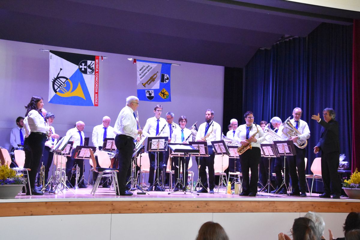 La Società da musica Concordia Ardez, suot la bachetta da Reto Mayer... (fotografia: Nicolo Bass).