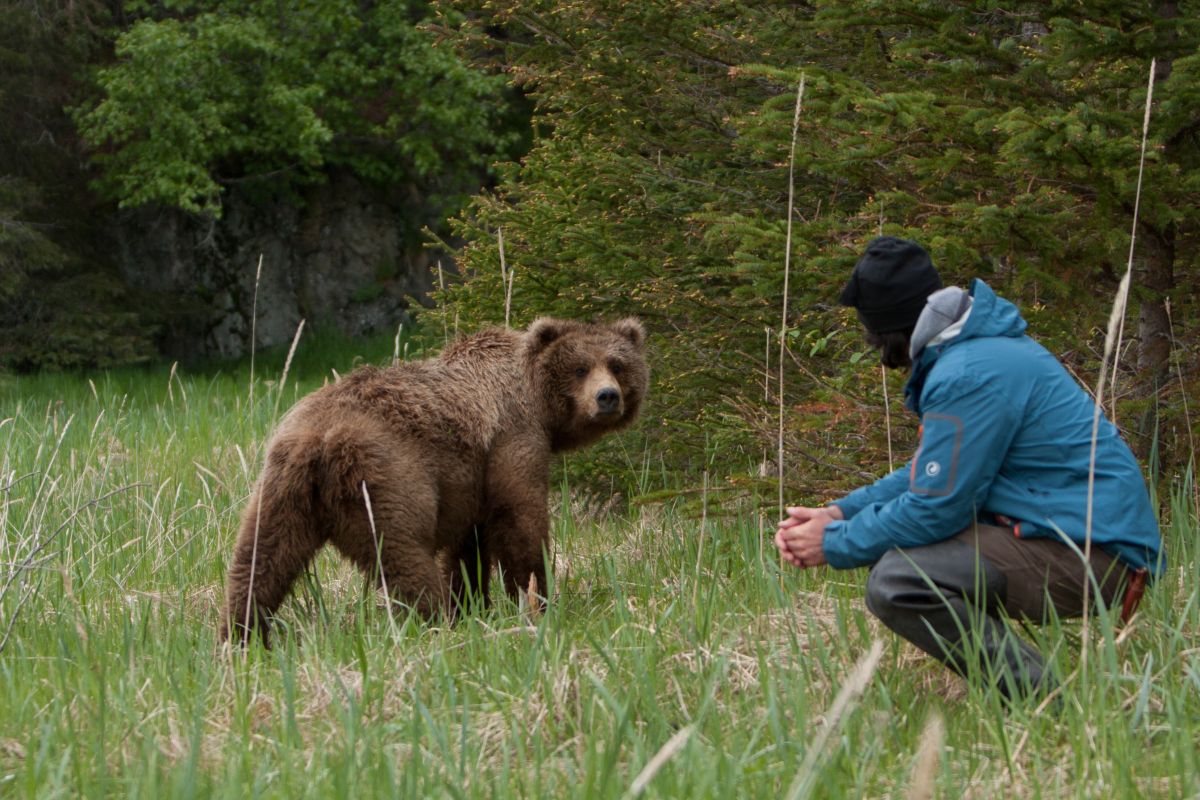 Für den Bärenexperten gehören entspannte und nahe Begegnungen mit Bären und Bärenfamilien seit fast vier Jahrzehnten praktisch zum Alltag. Beide Bärenbilder wurden in Alaska aufgenommen. Fotos: Beatrice Feiner/Reno Sommerhalder