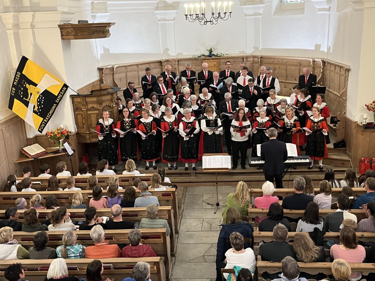 Dass sich der neue Chor mehr als gefunden hat und Dirigent Patrik Würms viel Freude an der neuen Truppe hat, bewies er nicht nur beim Dirigieren. Auch bei der Programmgestaltung bewies er ein gutes Händchen, und so kamen das anwesende Publikum, die für einmal in der viel zu kleinen Kirche einen Platz suchten, in den Genuss eines Konzerts, in dem von Patent Ochsner über traditionelle Lieder bis hin zum neuen «Pop Alpin» und einem in einem Pub entstandenen Song alles zu hören war. Die «Baselgia San Niculo» tat ihr Übriges, um im richtigen Moment die einzelnen Stimmen hervorzuheben oder beim Lied «La Montanara», das mit fünf verschiedenen Stimmen gesungen wurde, den gesamten Chor perfekt erklingen zu lassen. Auch die instrumentale Begleitung durch ein Flügelhorn und einer Querflöte bei einigen Liedern war optimal und stimmig gewählt.
