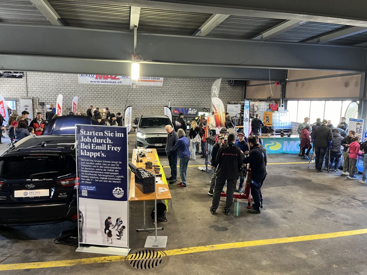Die Messe bot angehenden Berufsleuten und weiteren Interessierten die Möglichkeit, verschiedene Berufe kennenzulernen. Von der Karosseriespenglerei über den Pneuwechsel am Lastwagen bis zur Faszination des Berufes Helikoptermechaniker war alles dabei. Anschauungsmodelle von Motoren, Getrieben, Katalysatoren oder eine Anlage zum Einstellen der Lichtanlage am Auto. Es fehlte an nichts. Mitmachen und selber ausprobieren war auch in diesem Jahr das Motto der Veranstalter. Für jede und jeden war etwas dabei, und die Möglichkeiten, selbst einmal Hand anzulegen, wurde rege genutzt. Sich einmal selbst als Baggerfahrer zu versuchen oder zu erleben, wie es sich anfühlt, in einer Pistenraupe zu sitzen, lockte die Besucher ebenso wie das Bestaunen eines MC Laren im Wert von rund 400 000 Franken, den es so, wie er in Samedan stand, nur einmal in der Schweiz gibt. Grossen Andrang und sogar eine Warteschlange gab es beim Helikopter der Heli Bernina. Einmal im Cockpit sitzen und selber den Steuerknüppel in die Hand nehmen, war für Gross und Klein eine willkommene Gelegenheit für ein bleibendes Erinnerungsfoto. An den verschiedenen Ständen in den beiden Hangars konnte man auch sein eigenes handwerkliches Geschick ausprobieren. Sei es beim Zusammenstecken einer Lichtanlage, damit der Scheinwerfer seine Arbeit verrichten konnte, oder beim Zusammenschrauben eines selbst gebastelten Formel-1-Modells unter fachkundiger Anleitung. Der vergangene Samstag hat eines gezeigt: Die Faszination Automobil ist auch 100 Jahre nach der Aufhebung des Autofahrverbots in Graubünden lebendiger denn je. (ag) Foto: Andrea Gutgsell