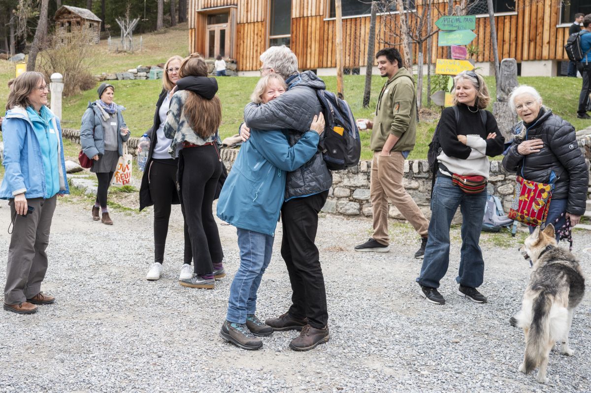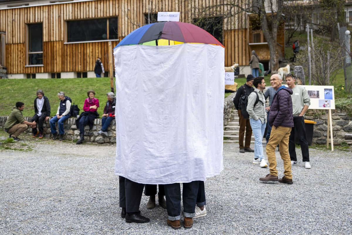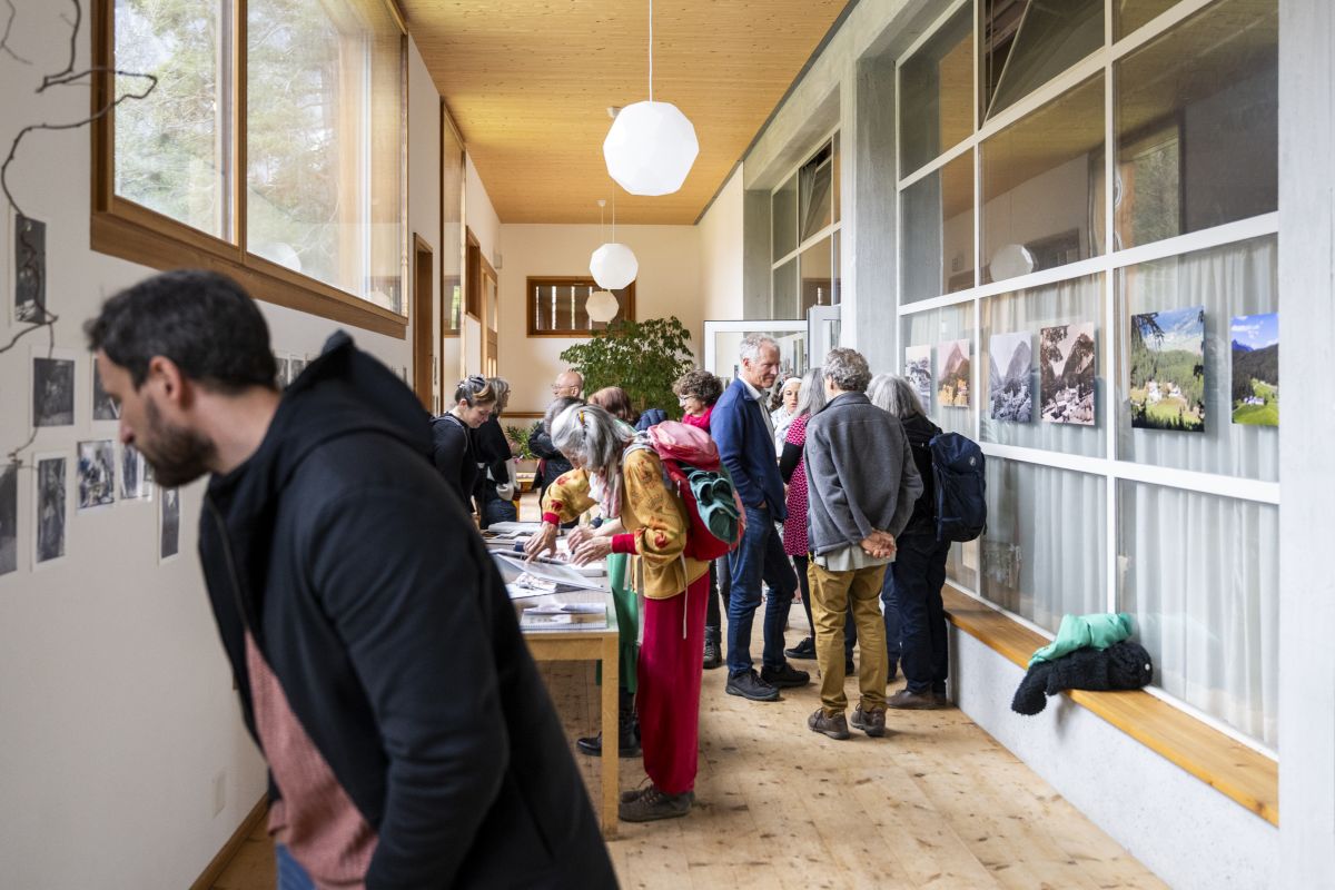 Monika Peter war Schülerin in den Anfangsjahren der Bergschule. Moderator Jakob Fuchs befragt sie zu ihrer Zeit in den 1950er Jahren im Unterengadin. Bild: Mayk Wendt