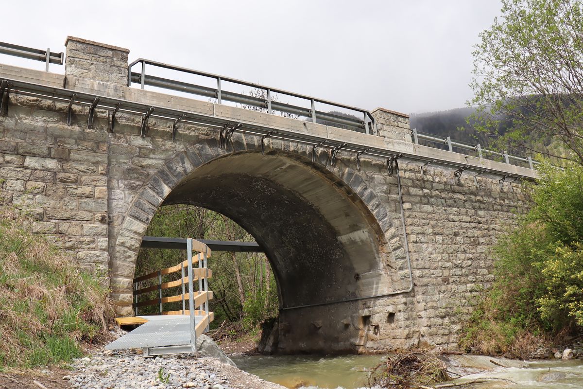 Il nouv pionch da la senda «a la riva dal Rom» maina suot la punt da la via chantunala oura (fotografia: Martin Camichel).