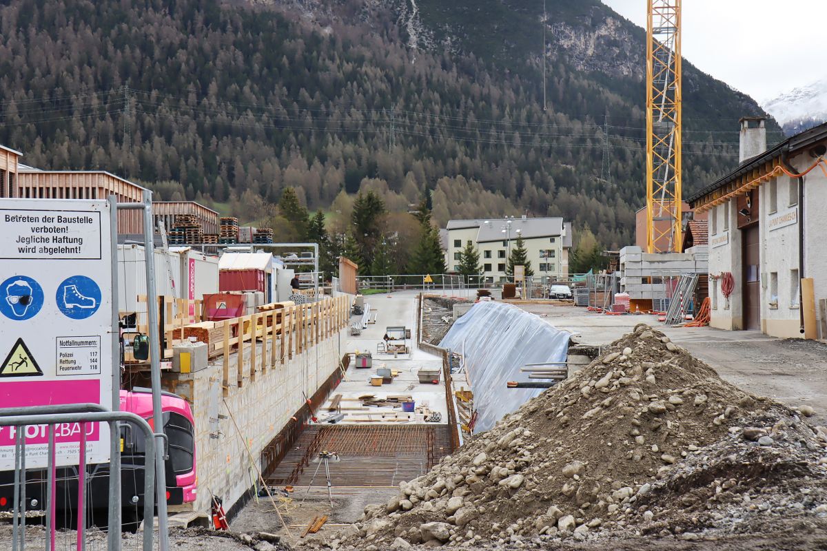 Las lavuors da fabrica vi d’ün tunnel d’access, chi collia la futura garascha da l’InnHub cun la via a La Punt, haun eir già cumanzo (fotografia: Martin Camichel).
