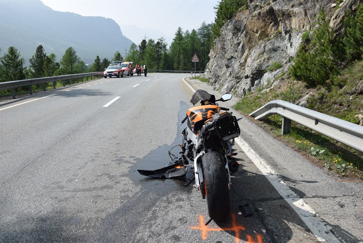 In Pontresina hat sich am Montagnachmittag ein Selbstunfall mit einem Motorrad ereignet.
