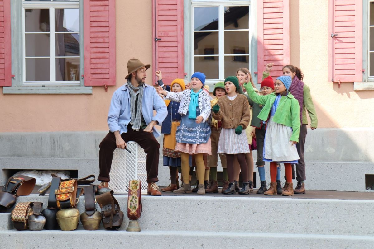 Pfingstmontag, Mittagszeit. Die schwere Holztüre des Schulhauses öffnet sich und zwei Kinder treten in die gleissende Sonne. Es sind unverkennbar Uorsin und Flurina – der Schellen-Ursli und seine Schwester. Beide tragen eine Glocke ins Freie. Flurina steht da mit Kopftuch, Zöpfen und geringelter Strumpfhose, Uorsin mit Zipfelmütze, gelbbrauner Hose und breitem Grinsen. Nun, eigentlich steht da das Geschwisterpaar Luisa und Jöri Würms aus Pontresina. Die 14-Jährige und der Elfjährige haben die Herausforderung angenommen, an der Familienoper «Schellen-Ursli» die Hauptrollen zu übernehmen. Zumindest bei den Aufführungen im Oberengadin. Im Unterengadin schlüpfen die Zwölfjährige Chiara Staub und die gleichaltrige Ambra Fanchi aus Sent in dieselben Theaterkleider und spielen Flurina und Uorsin auf Vallader statt auf Puter.