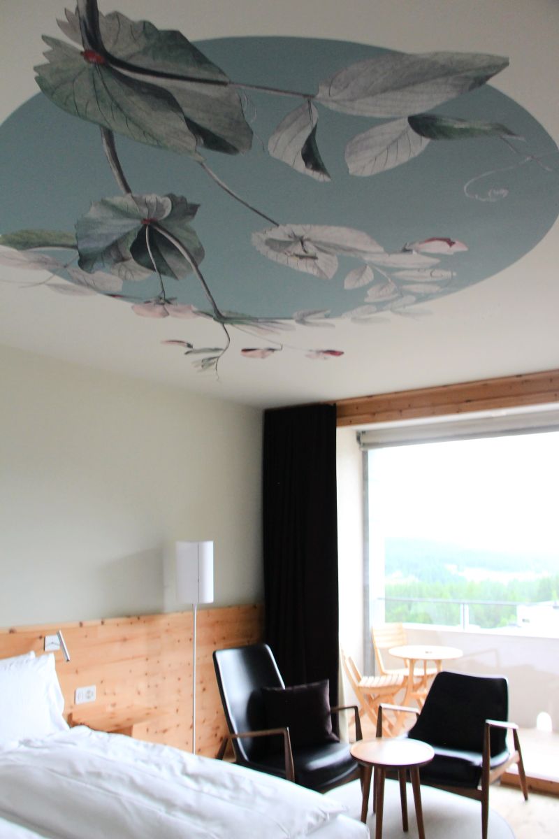 Die Decken der Gästezimmer im Hotel Maistra 160 sind mit verschiedenen Blumen ausgemalt. Als Vorlage dienten florale Bilder von Johannes Stauffacher. Foto: Stefanie Wick Widmer