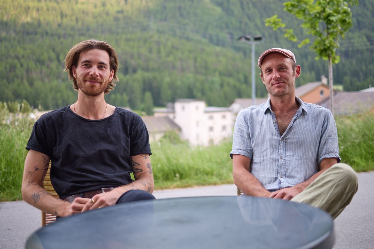 Jason Studerus e Tobias Schwarz (da schnestra) organiseschan cun lur co-iniziants üna sairada da dialog a Lavin (fotografia: Michael Steiner).