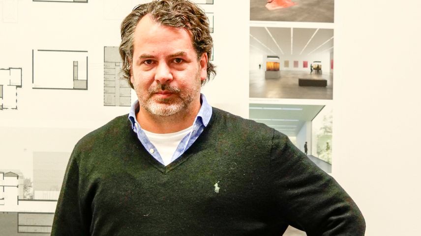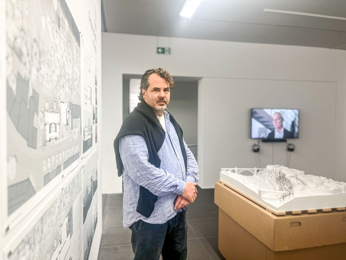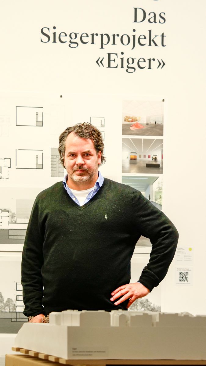 Architekt Chasper Schmidlin mit seinem Siegerprojekt "Eiger" in der Projektausstellung im Kunstmuseum Bern. Fotos: Jon Duschletta