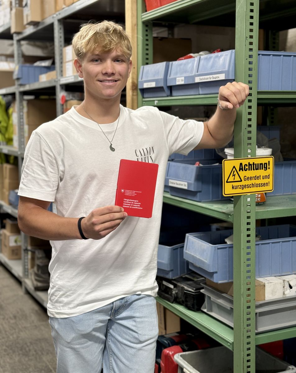 Silvano Guler da Sent ha terminà seis giarsunadi sco meglder electriker da rait da la Svizra Orientala. Culla nota 5,4 ha’l fini e po uossa tgnair in man seis attestat da qualificaziun da la Confederaziun svizra.