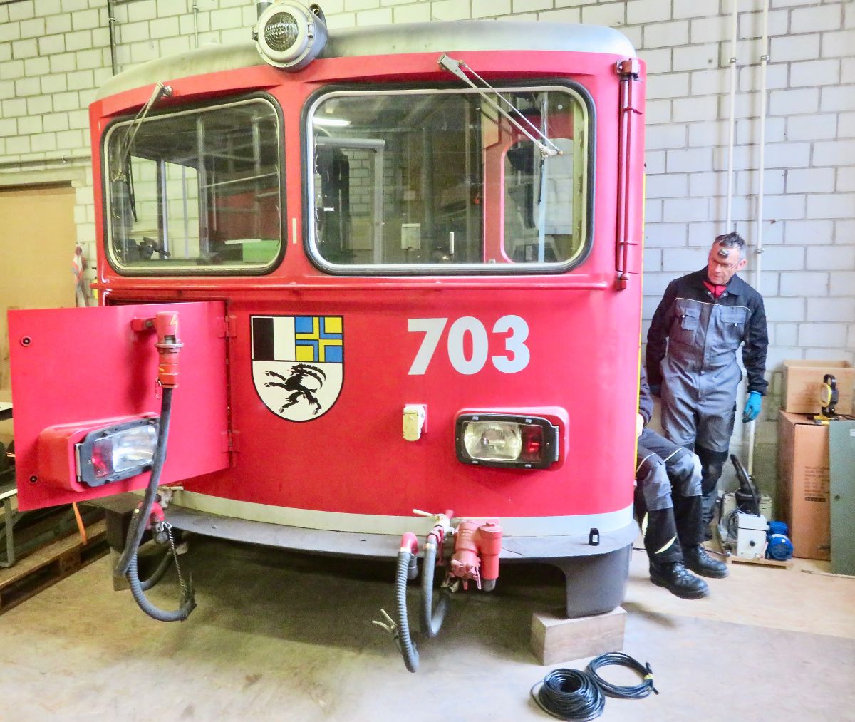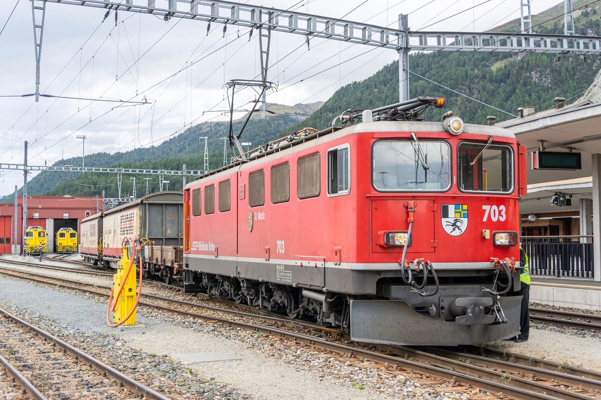 Nach ihrer Inbetriebnahme wurden die Loks an den Orten ihrer Wappen eingeweiht und getauft. Dies gab jeweils Anlass zu einem Volksfest, was von der damaligen Verbundenheit von Bahn und Einwohnern zeugt. Die Lok mit der Nummer 703 erhielt das Wappen von St. Moritz und wurde am 14. April 1965 getauft. Franz Skvor war an diesem Ereignis dabei und erinnert sich, dass gleichentags die sogenannte «Kollaudationsfahrt» stattgefunden hat. Dabei wurde die neue Lok während ihrer Führung des normalen Mittagsschnellzugs 83 von Chur nach St. Moritz unter Beisein von Beamten des Bundesamts für Verkehr erprobt und danach abgenommen. Die Lok war bereits ab Chur festlich geschmückt, um sich dann den Besuchern zu ihrer Einweihung und Taufe in St. Moritz von ihrer festlichsten Seite zu präsentieren.