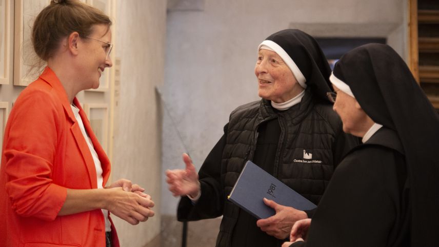 Die feierliche Eröffnung in der Klosterkirche Müstair wurde im Beisein aller acht Klosterfrauen durch Romina Ebenhöch, Museumsdirektorin und Kuratorin der Ausstellung begangen. Sie betonte die Bedeutung des Jubiläumsjahres und sagte, verbunden mit einem speziellen Dank an die Glaubensschwestern: «Dass das Gebäude noch immer existiert und belebt ist, haben wir, neben der Stiftung Pro Kloster St. Johann, vor allem der Klostergemeinschaft der Benediktinerinnen zu verdanken.» Dabei nehme Schwester Pia eine besondere Rolle ein, schreibt die Museumsleitung in einer Medienmitteilung. Sie sei mit ihren 93 Jahren nicht nur die älteste Benediktinerin von Müstair, sondern sei in einem entscheidenden Zeitraum auch als Priorin tätig gewesen.