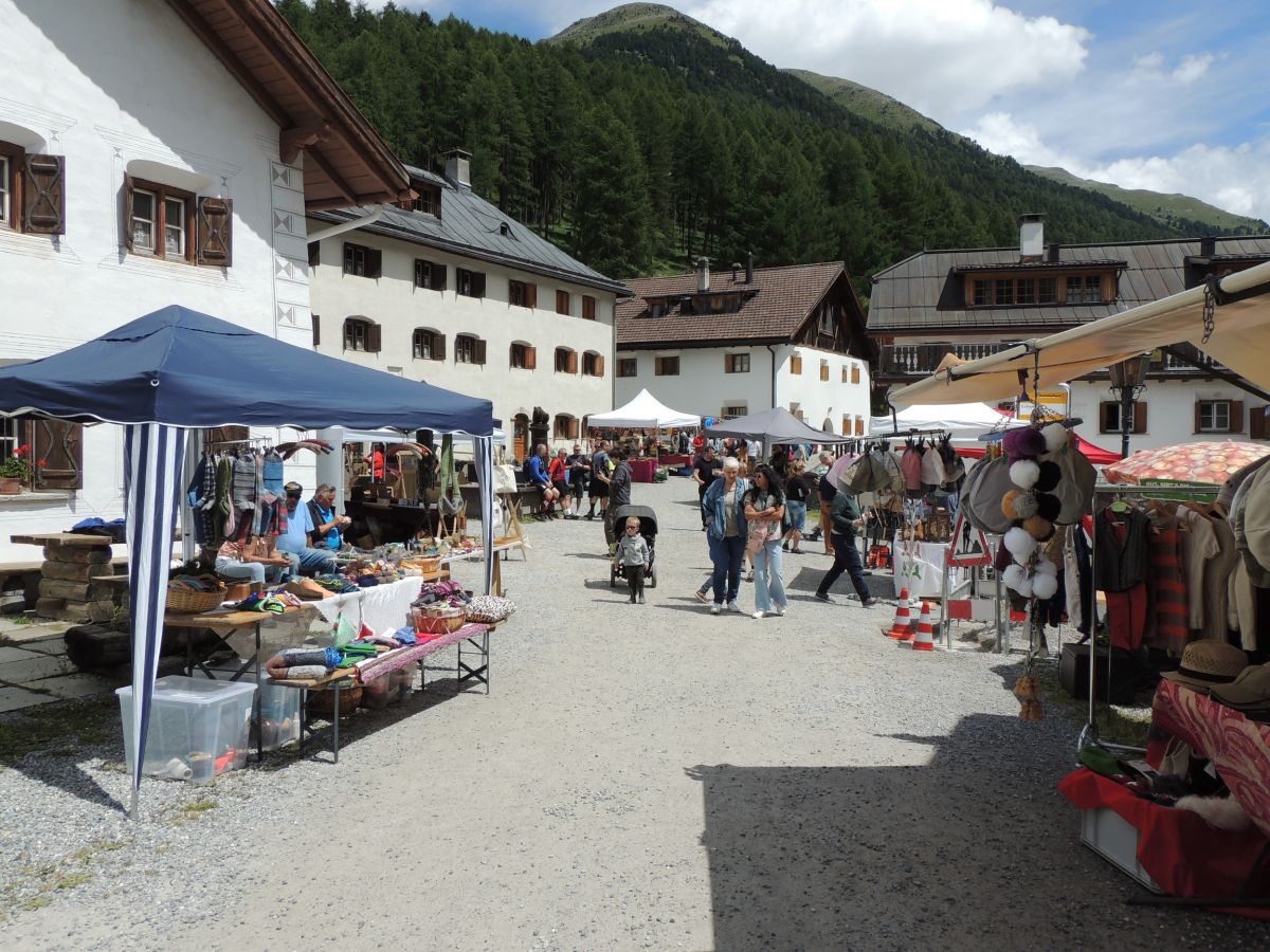 Il marchà artischan immez la fracziun da S-charl – sco adüna in ün ambiaint istoric (fotografia: Benedict Stecher).