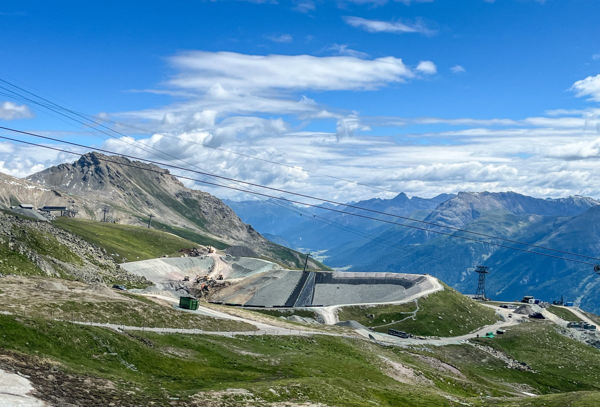 Unterhalb des Lej Nair Pitschen liegt die Verteilstation. Von hier aus werden die Beschneiungssysteme mit Schmelzwasser gespeist. Auf dem Dach die luftbasierte Wasserkühlung.