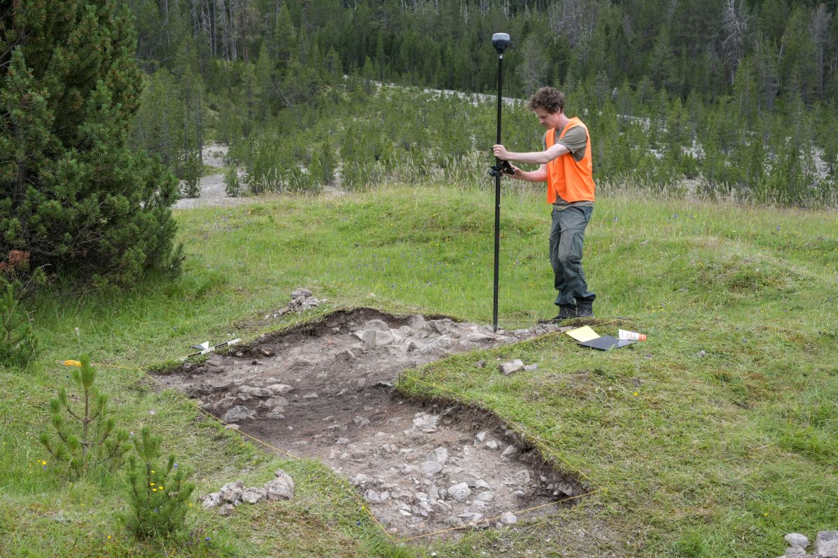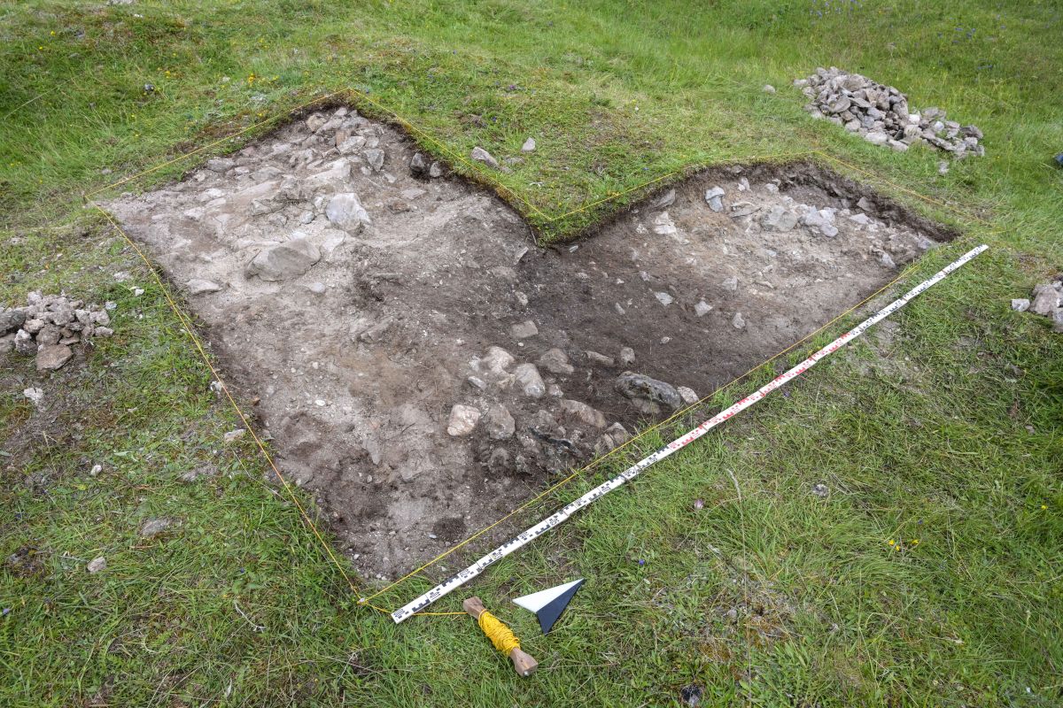 Archäologe Raphael Sele am Ausgrabungsort Stabelchod bei Zernez, wo eine frühe Kapelle als Teil einer vormaligen Siedlung vermutet wird. Fotos: Archäologischer Dienst Graubünden