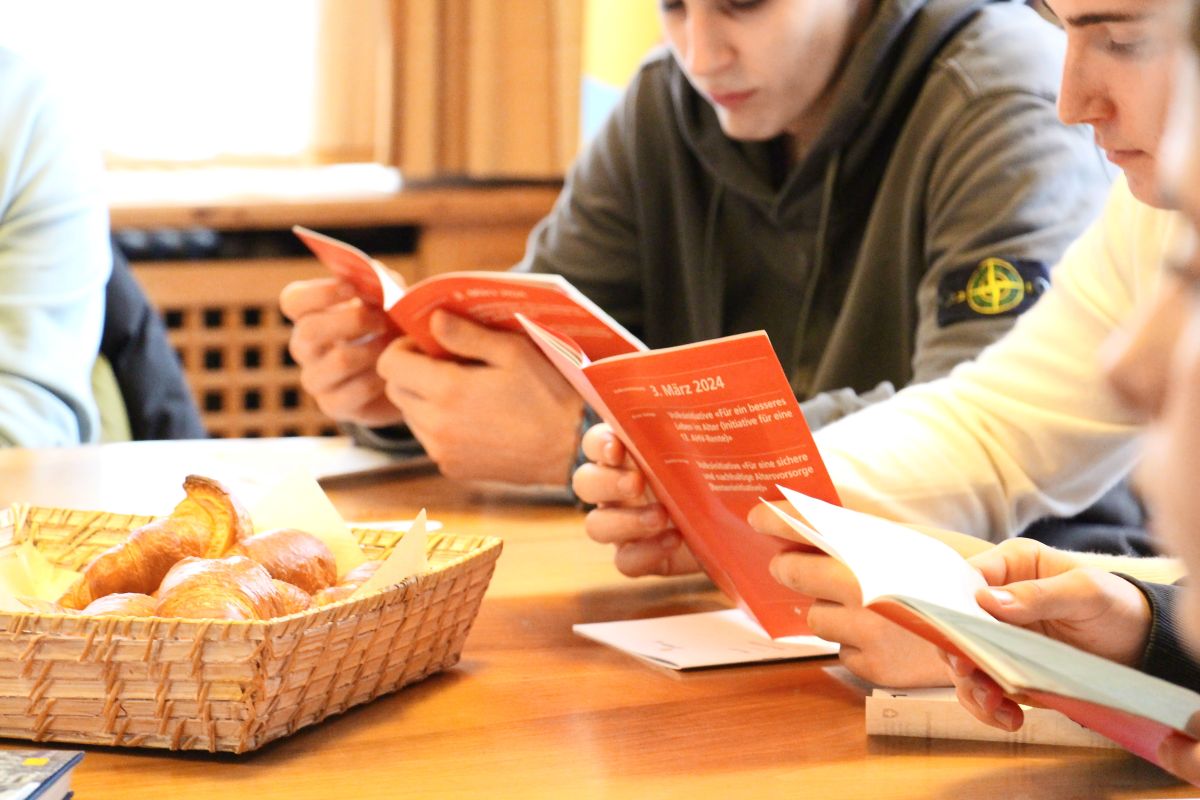 Jugendliche informieren sich über eine Vorlage. Foto: Julia Biffi