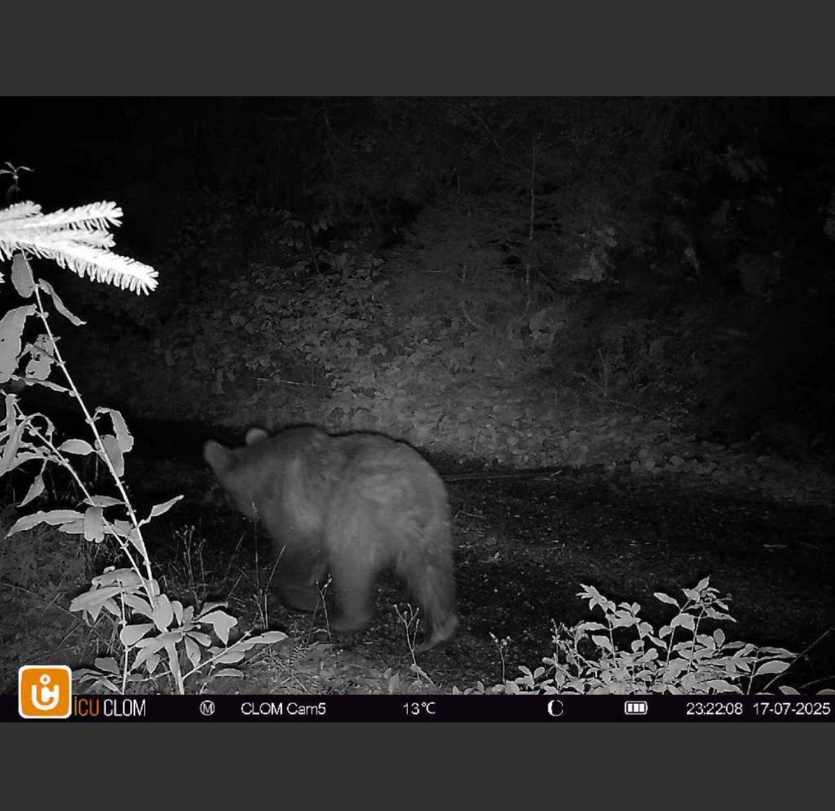 Der Bär tappt am 17. Juli in die Fotofalle. Foto: Amt für Jagd und Fischerei Graubünden