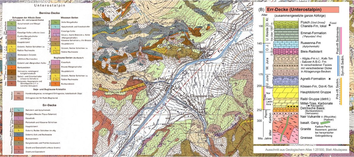 Ausschnitt aus dem geologischen Atlas der Schweiz 1:25'000 bei La Punt-Chamues-ch