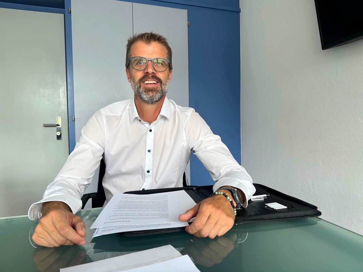Adrian Barbüda es president dal cussagl administrativ da la Bogn Engiadina Scuol SA e declera la visiun per adattar la sporta cun ün nouv bogn per uffants e famiglias (fotografia: Nicolo Bass).