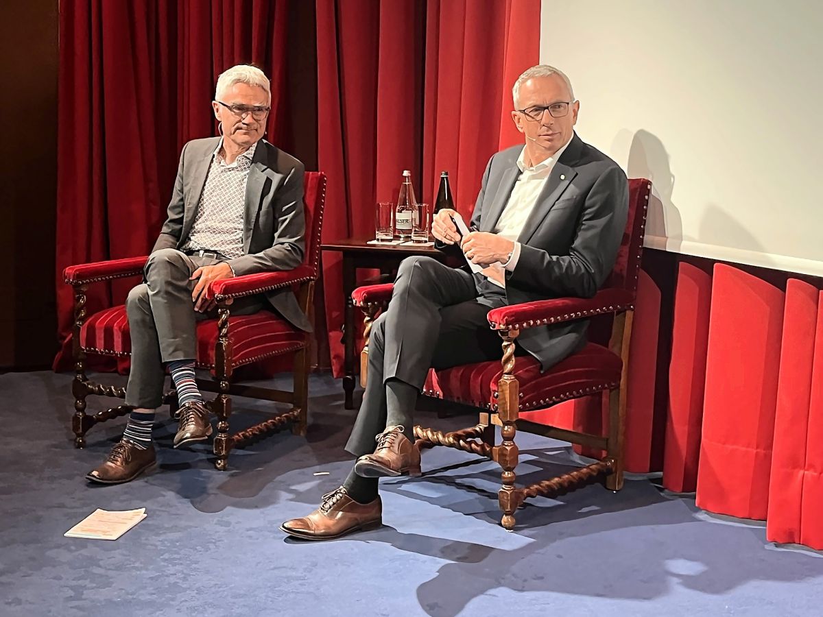 Mario Cavigelli (Links) und Markus Berweger folgten der Einladung der SVP zum Podiumsgespräch (Foto: Andrea Gutgsell).