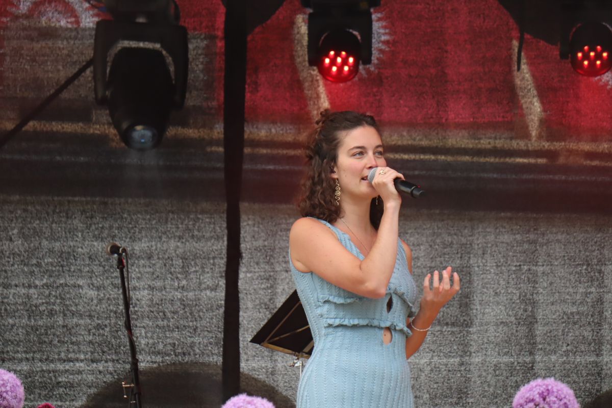 L’artista Cinzia Regensburger ha preschantà in dumengia dürant la Tavolata sia nouva EP «Per Tai» (fotografia: Martin Camichel).