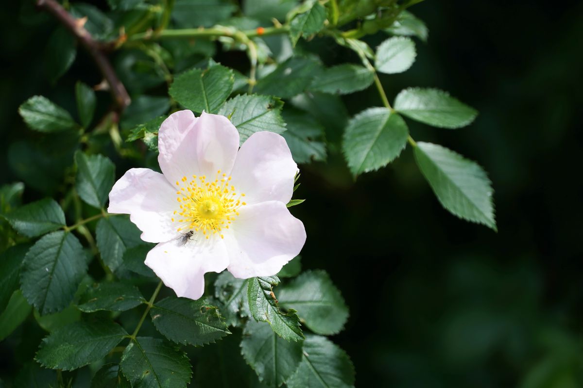 Aus der Hagerose mit rosa-weisslichen Blüten vor dem Laub werden schmackhafte Beeren. Fotos: Jürg Baeder