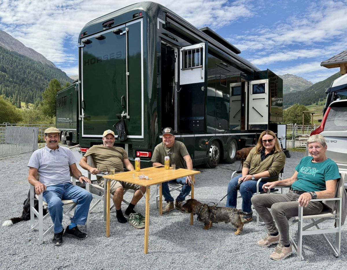 Pünktlich zum Auftakt des fünftägigen Turniers ist die Engadiner Sonne endlich zurück. Die Freunde von Duri Casty, die ihren Pferdeanhänger für die Zeit des Concours Hippique Zuoz auf seinem Hof am Rande von Zuoz abgestellt haben, sitzen auf Campingstühlen und trinken Apéro. «Wir verbinden den Concours immer mit Ferien, denn hier ist es einfach schön», meint einer der Freunde. Auf die Frage, was denn das Besondere am Turnier in Zuoz sei, meint ein anderer Freund: «Duri natürlich.» Alle nicken zustimmend.