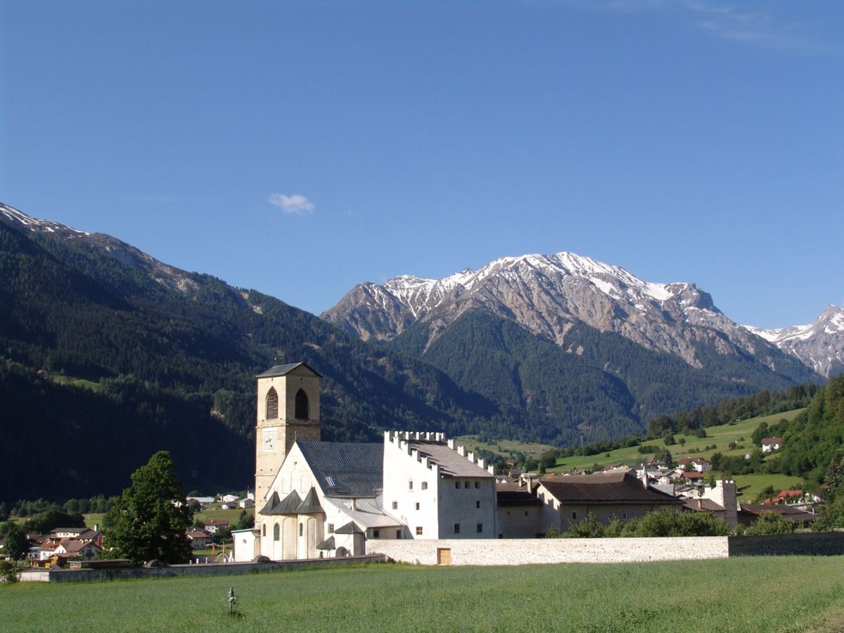 Die E-Bike GranTour St.-Moritz-Venedig führt am Unesco Welterbe St. Johann in Müstair vorbei. Foto: Archiv