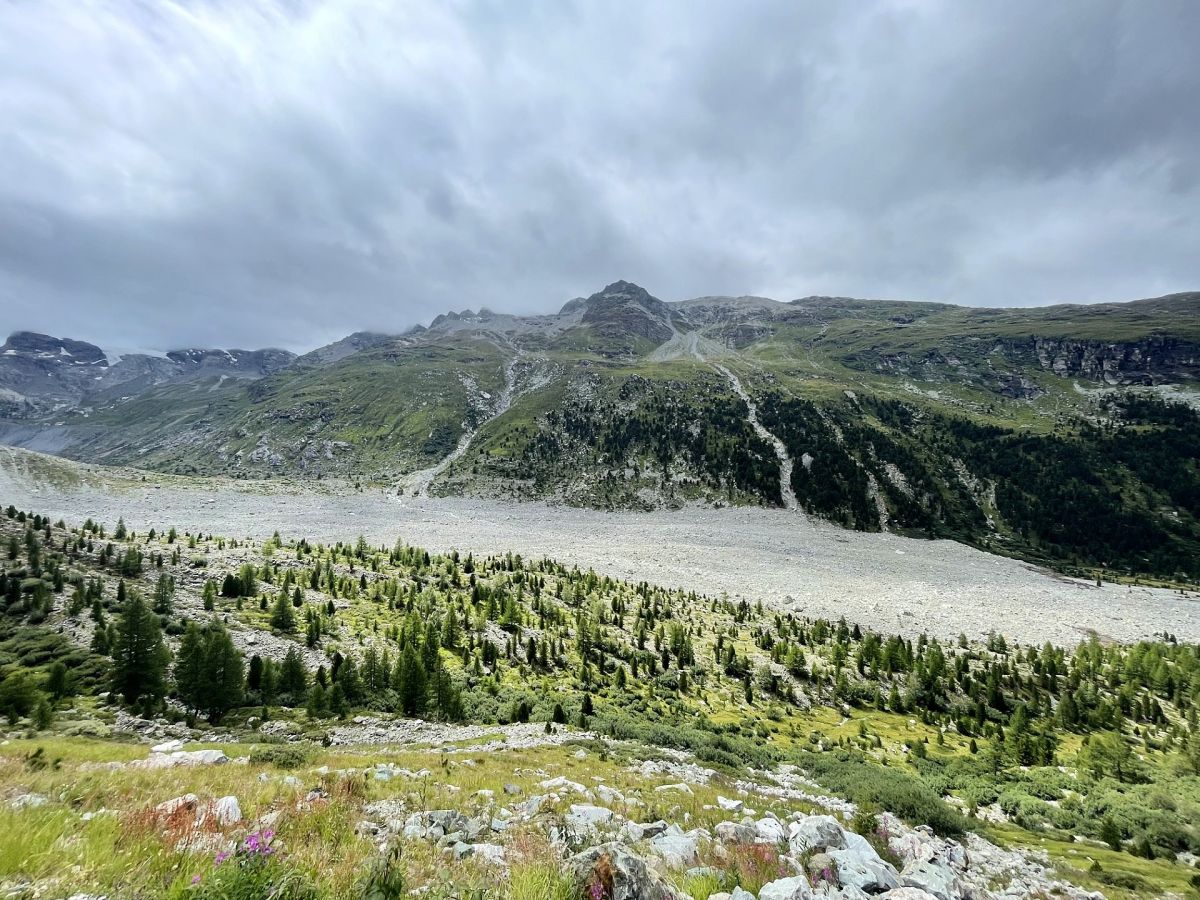 Das Ablagerungsvolumen hat sich seit dem Bergsturz deutlich verringert, ist aber immer noch eindrücklich: Das Material liegt durchschnittlich zwölf Meter hoch, das gesamte Volumen wird auf 4,6 Millionen Kubikmetern beziffert. Foto: Reto Stifel