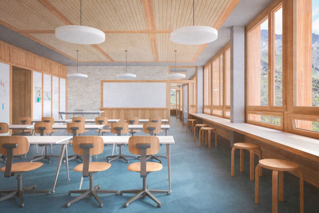 Die Primarschule. Visualisierung: Quelle ARGE Albertin Architekten Haldenstein / OG 27 St. Moritz