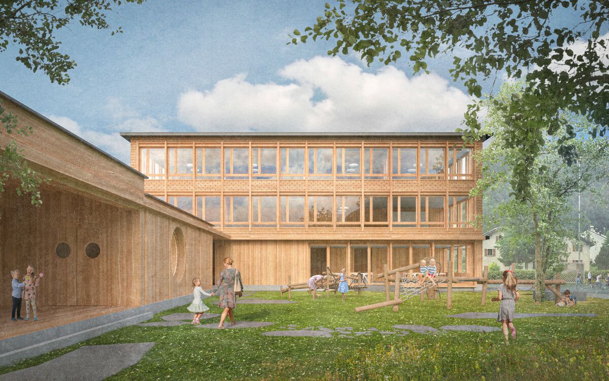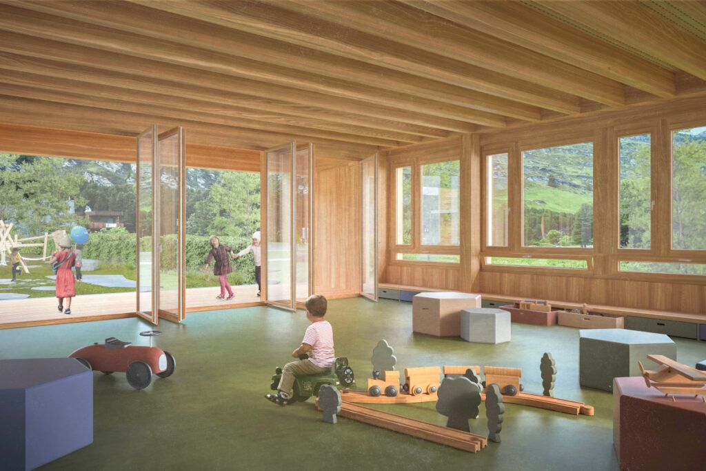 Der Kindergarten. Visualisierung: Quelle ARGE Albertin Architekten Haldenstein / OG 27 St. Moritz