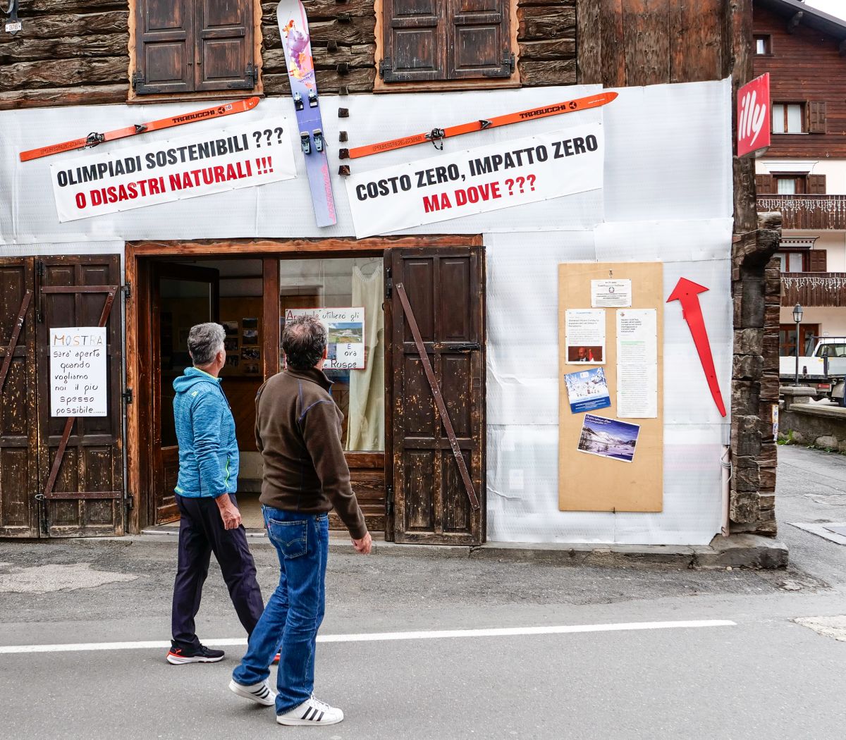 Savio Peri (links) und Carletto Bormolini sprechen in Livigno offen von einem ökologischen Umweltdesaster und fehlender Nachhaltigkeit bei der Umsetzung der Olympischen Winterspiele Milano Cortina 2026.