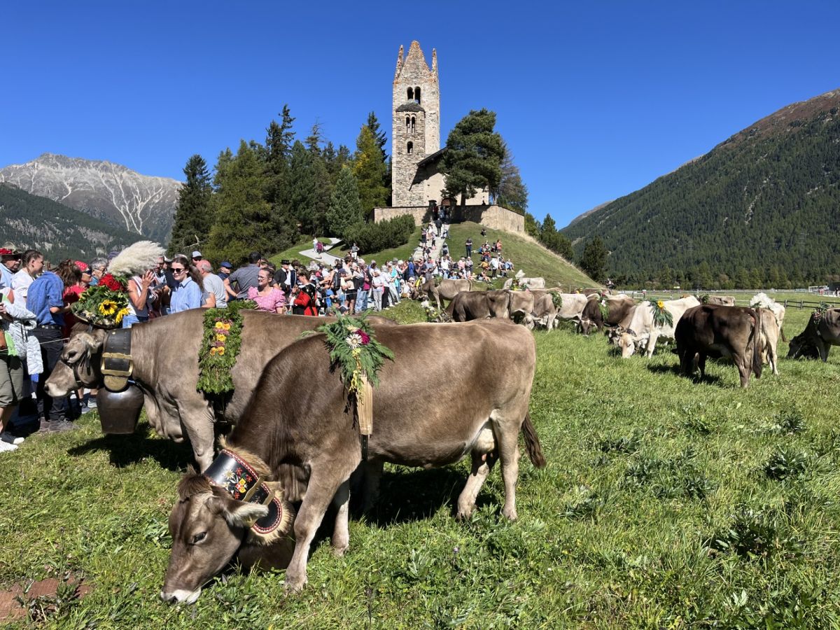 Die mit Blumen geschmückten Kühe, begleitet vom Klang der grossen Glocken, zogen durch das Dorf. Die bunten Trachten verliehen dem Anlass eine unverwechselbare Atmosphäre. Für den passenden Rahmen sorgten die S-Chelders la Margna sowie die Schülerinnen und Schüler der Gemeindeschule Celerina. Mehr über den Alpabzug lesen Sie in der kommenden Dienstagsausgabe der Engadiner Post.