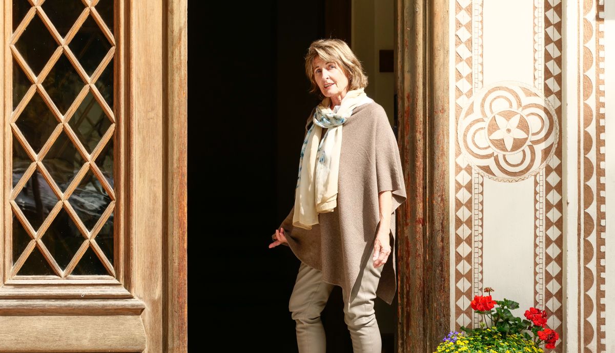Montserrat «Monzi» Schmidt in Samedan im Garten der Chesa Ruppaner, wo sich das Büro des Gemeindeverbandes Öffentlicher Verkehr Oberengadin befindet. «Nicht alle wissen, dass wir nicht der Region unterstehen.» Fotos: Jon Duschletta